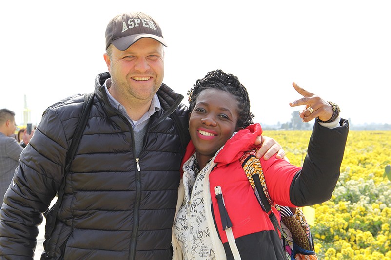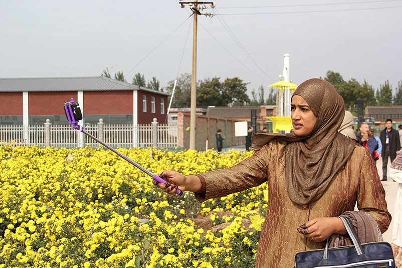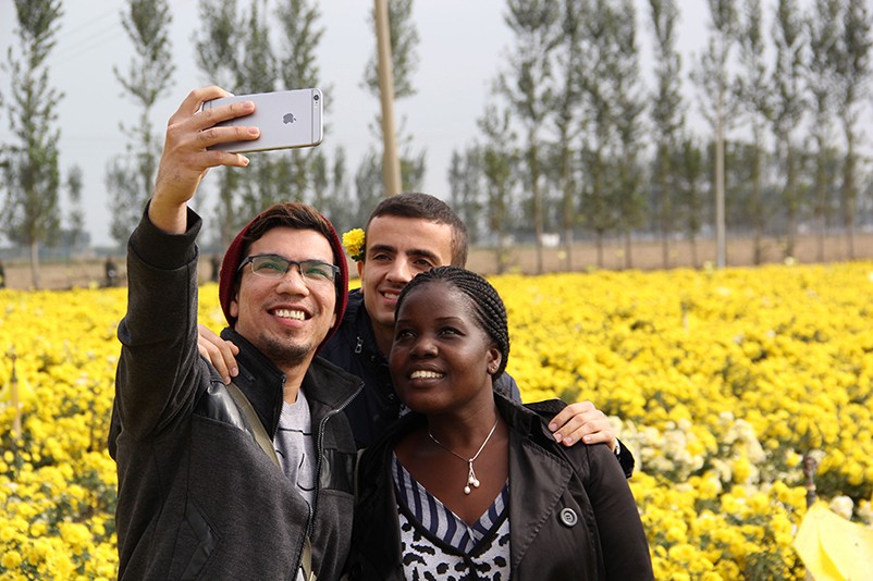 這也在拍,那也在拍,看來(lái)這些外國專(zhuān)家對咱們的云臺冰菊很有興趣么~各類(lèi)膚色的人聚在一起共同賞菊品菊,場(chǎng)面和諧極了,看來(lái)不僅藝術(shù)能促進(jìn)各國間的文化交流,農業(yè)照樣有聚集人心的魅力??!